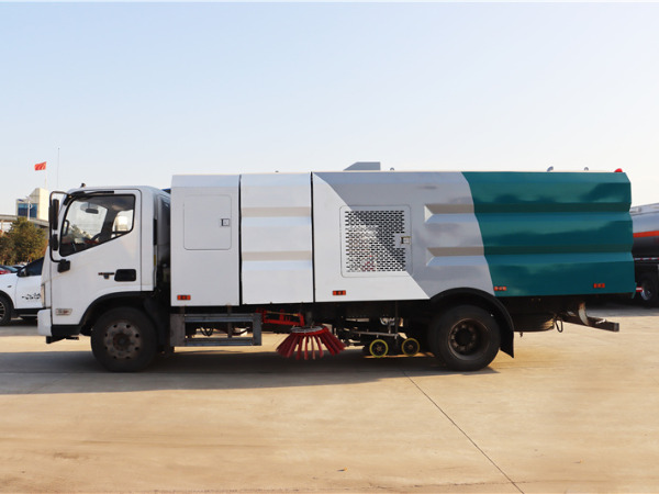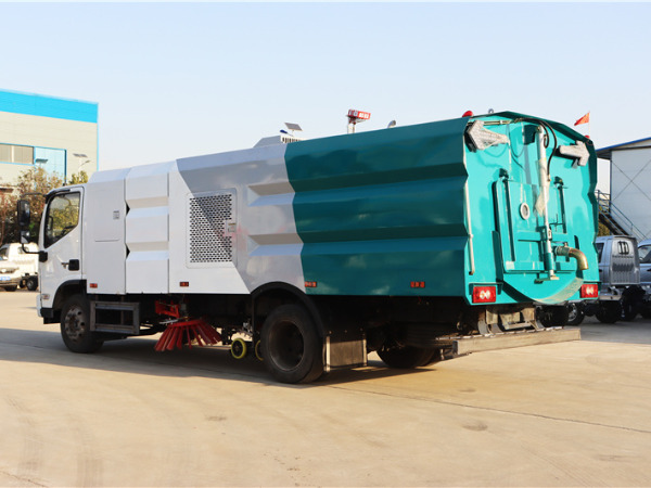 天錦洗掃車利用高壓水流及傾斜掃刷將垃圾掃**吸盤前面,在風機產(chǎn)生的負壓作業(yè)下,風流在閉合的回路中將垃圾吸入垃圾箱儲存,整個作業(yè)過程均是物理原理,不會產(chǎn)生化學廢料或垃圾外泄對環(huán)境的二次污染,同時,后噴霧的降塵有效的降低了空氣中的粉塵濃度,解決粉塵污染問題。洗掃潔凈度高,該車型功能齊全能解決不同路面環(huán)境的作業(yè),一次作業(yè)洗掃效率達98%以上,**沖洗功能、洗掃功能、路沿清洗功能、后噴霧功能、低壓沖洗功能以及采用的中置吸盤+左右噴桿清洗方式,可對頁面、勾縫、彎道處、路沿上等處的灰塵、垃圾均能有效的處理干凈,確保環(huán)境整潔。