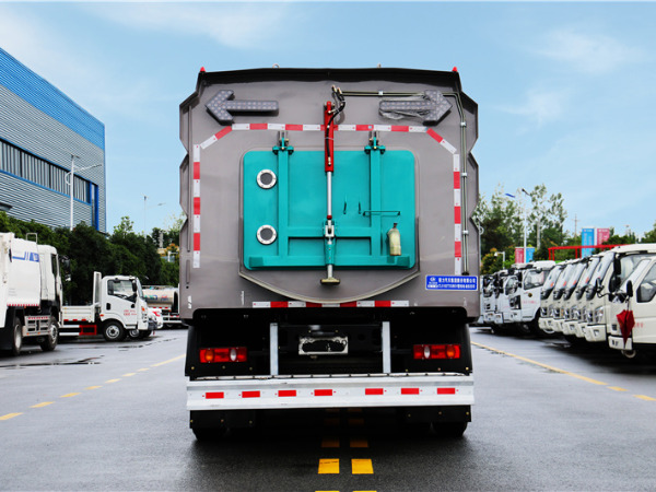● 清水箱和垃圾箱分體布置,有效空間利用**化,一次連續(xù)作業(yè)時(shí)間長。同時(shí)在作業(yè)過程中可通過污水排放裝置對污水進(jìn)行排放,隨時(shí)加清水繼續(xù)作業(yè);垃圾箱采用雙油缸自卸卸料,箱內(nèi)同時(shí)設(shè)有大流量高壓噴嘴,可快速?zèng)_洗垃圾箱