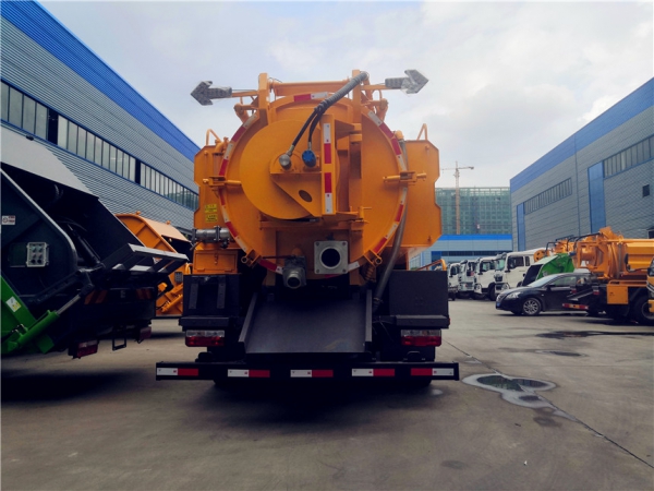 清洗部分:3方水箱,采用4mmQ235優(yōu)質(zhì)碳鋼板,水箱兩側(cè)消防接口進(jìn)水,工具箱一個(gè)。采用德國品浮高壓泵215升流量,22兆帕,配60米內(nèi)徑19#高壓管,10個(gè)大小不同噴頭一套, 后置式清洗卷盤,帶淋管裝置(用于淋洗高壓管疏通管道過后上面殘留的污物),帶氣吹水功能(用于吹出每次高壓管工作完以后內(nèi)部殘留的水漬,防止天冷結(jié)冰影響下次使用)