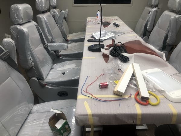 (2)車內(nèi)空間大(長(zhǎng)×寬×高=7345mm×1993mm×2870mm),能同時(shí)容納多人進(jìn)行開會(huì)、辦公;