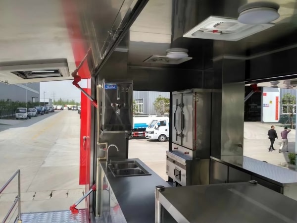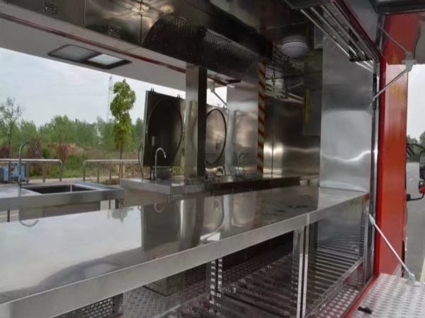 外部配置:外部照明、遮陽棚、換氣扇等。東風天錦餐車,后勤保障炊事車設計原理基于房車、流動餐飲車、流動售賣車的外觀、布局、功能性等集合為一體,以售賣快餐、冷飲為主,車型弧度美觀,大氣,配備標志性公司圖文設計,以及個性化車貼,更能引起消費者眼球。一側(cè)車廂展開作為賣窗口;另一側(cè)配備遮陽棚,車廂內(nèi)飾為不銹鋼,配備配備不銹鋼爬梯、護欄、凈水箱,污水箱,雙眼灶,蒸飯車,冰箱等。不銹鋼整體壁柜,工作臺,發(fā)電機,空調(diào)等;具體配置以及每個客戶不同要求,我公司采用一對一服務,歡迎咨詢!