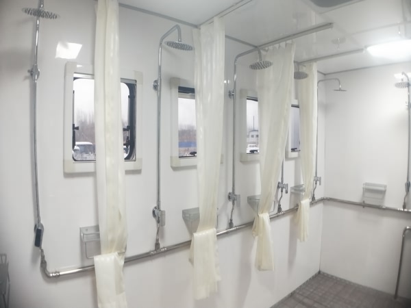(3)車內(nèi)配制不銹鋼水箱,可汲取符合 時飲用水標(biāo)準(zhǔn)的地表水,經(jīng)水質(zhì)凈化后,保證 洗浴需要,也可直接使用市政用水;
