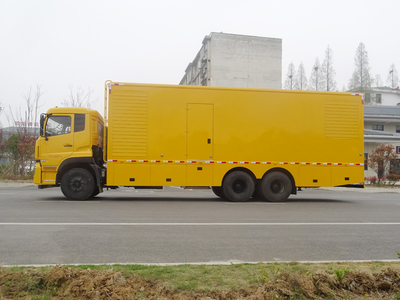 電源車可稱為移動電源車、應(yīng)急電源車、發(fā)電車。多功能應(yīng)急電源車是在定型的二類汽車底盤上加裝廂體及發(fā)電機組和電力管理系統(tǒng)的專用車輛,主要用于如果停電將會產(chǎn)生嚴(yán)重影響的電力、通信、會議、工程搶險和需要電力保障的等場所,作機動應(yīng)急備用電源。電源車具有良好的越野性和對各種路面的適應(yīng)性,適應(yīng)于全天候的野外露天作業(yè),而且能在高、低溫和沙塵等惡劣的環(huán)境下工作。具有整體性能穩(wěn)定可靠、操作簡便、噪音低、排放性好、維護性好等特點,能很好的滿足戶外作業(yè)和應(yīng)急供電需要。