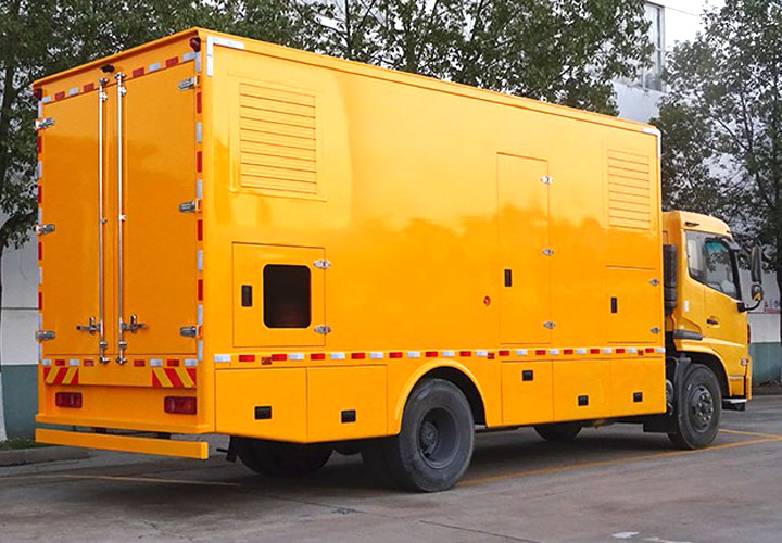 4、柴油發(fā)電機(jī)組安裝于廂體內(nèi)部**,處于車輛載重**,保證車輛行駛平穩(wěn)。